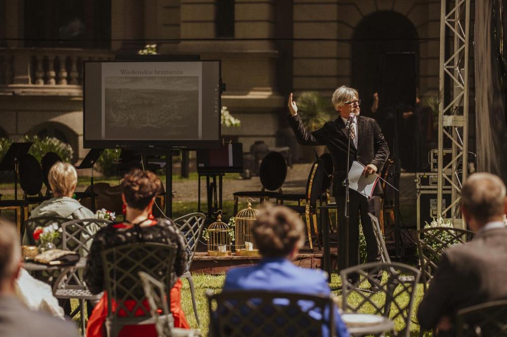 Artystyczne śniadanie na trawie. Wiedeńskie brzmienia. Słodkie śniadanie wiedeńskie. 200. rocznica urodzin J. Straussa. Wykład P. Osuchowskiego.