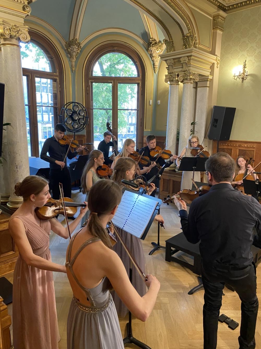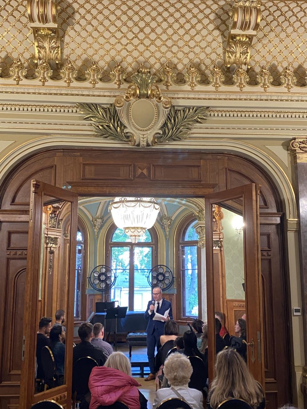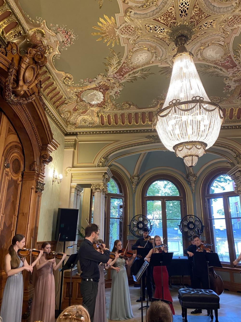 Otwierający spotkanie multimedialny wykład zatytułowany „Rejs po Luzytanii. Ze złotych kart Portugalii”, przybliżył stałym bywalcom szczecińskiej rezydencji przy al. Wojska Polskiego 84 mało znane wątki ciekawej historii Repúblici Portuguesa. W muzycznym programie wieczoru znalazły się natomiast utwory portugalskich kompozytorów Joly’ego Bragi Santosa i Luísa Tinoca. Publiczność gromkimi brawami przyjęła interpretację Koncertu nr 4 A-dur, BWV 1055 Johanna Sebastiana Bacha na klawesyn i orkiestrę smyczkową, opracowany przez João Barradasa na akordeon i orkiestrę smyczkową.