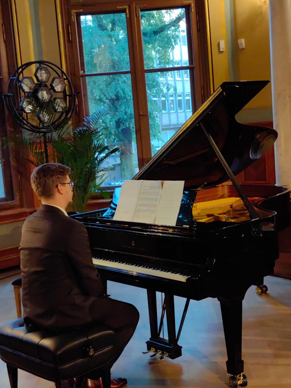 W trakcie spotkania literat przypomniał historię wyjątkowego dzieła Roberta Schumanna – Toccatę C-dur op. 7. Kompozytor nadał jej pierwotnie tytuł „Etiude fantastique en double sons” (Fantastyczne studium w podwójnych notatkach), z dopiskiem – „najtrudniejszy utwór, jaki kiedykolwiek napisano”. Do dziś takim rzeczywiście pozostaje i nic zatem dziwnego, że w programach koncertowych mają tę arcytrudną kompozycję najlepsi z najlepszych – najbardziej sprawni technicznie pianiści.