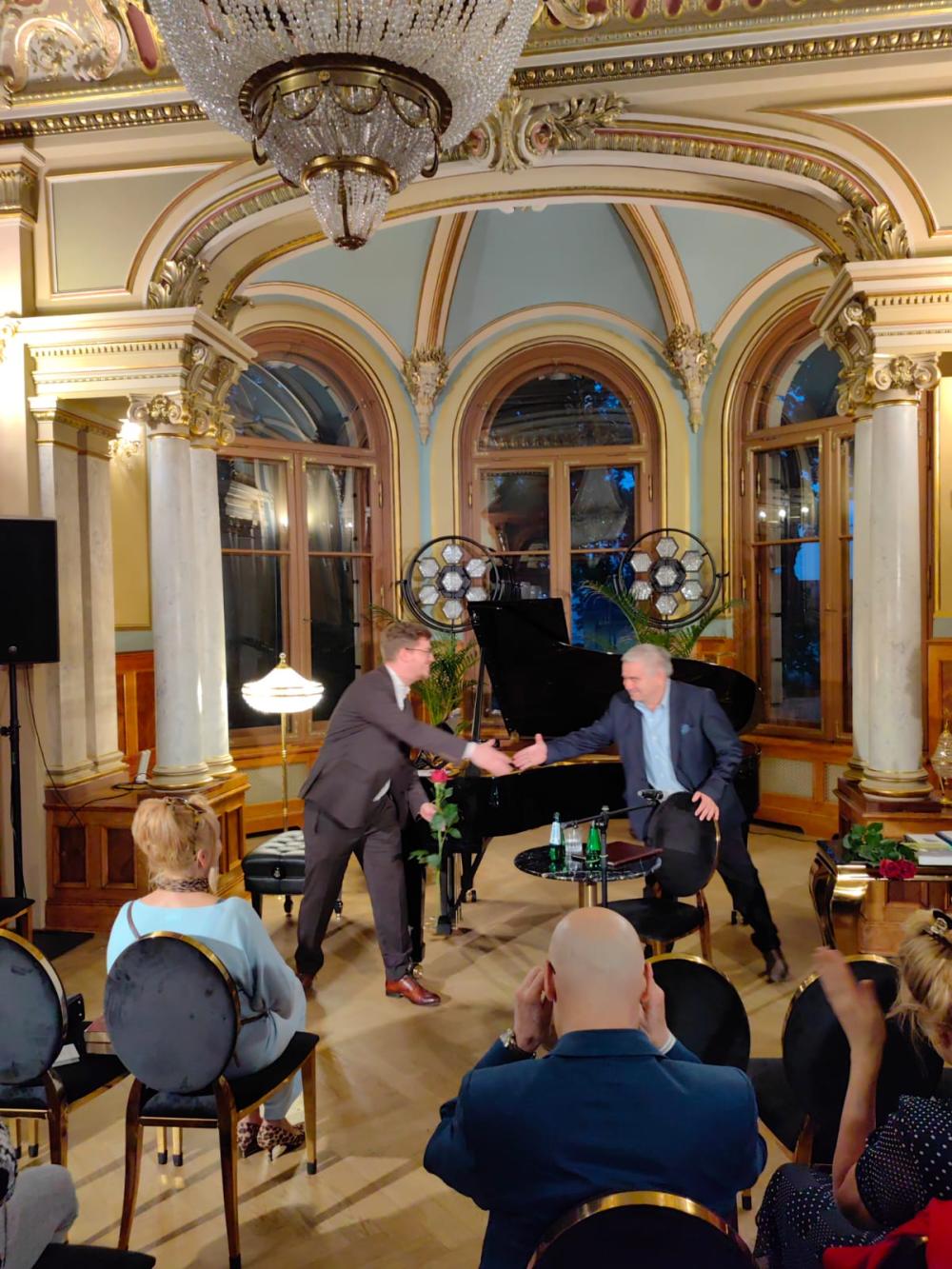 W poniedziałek i we wtorek (20 i 21.05.2024) z Gośćmi Willi Lentza spotkał się Antoni Libera – pisarz, tłumacz literatury, krytyk literacki i reżyser teatralny. Wieczór uświetnił także pianista Adam Tomaszewski.
