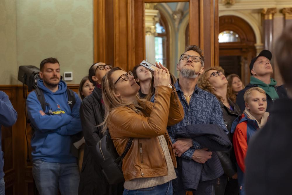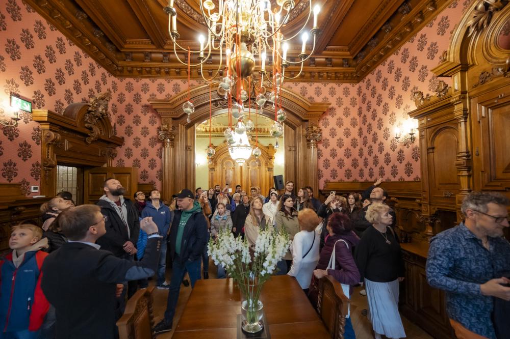 Goście mieli okazję zwiedzać zabytkowe wnętrza willi z profesjonalnymi przewodnikami oraz Miejskim Konserwatorem Zabytków 🕯️. Wystawa stała „Willa Lentza. Historia(od)nowa” pozwoliła poznać losy budynku, jego dawnych mieszkańców i spektakularne efekty prac konserwatorskich 🏰. Ogromnym zainteresowaniem cieszyły się dwie wystawy czasowe: „Szczecińskie malarstwo 1945-1989. Ze zbiorów Kolekcjonerów i Instytucji” – podróż przez niemal pół wieku twórczości szczecińskich artystów 🖼️✨ oraz międzynarodowa ekspozycja „Eonflux. Willa Czechy”, prezentująca prace ponad 20 artystów z Europy i świata 🌍.