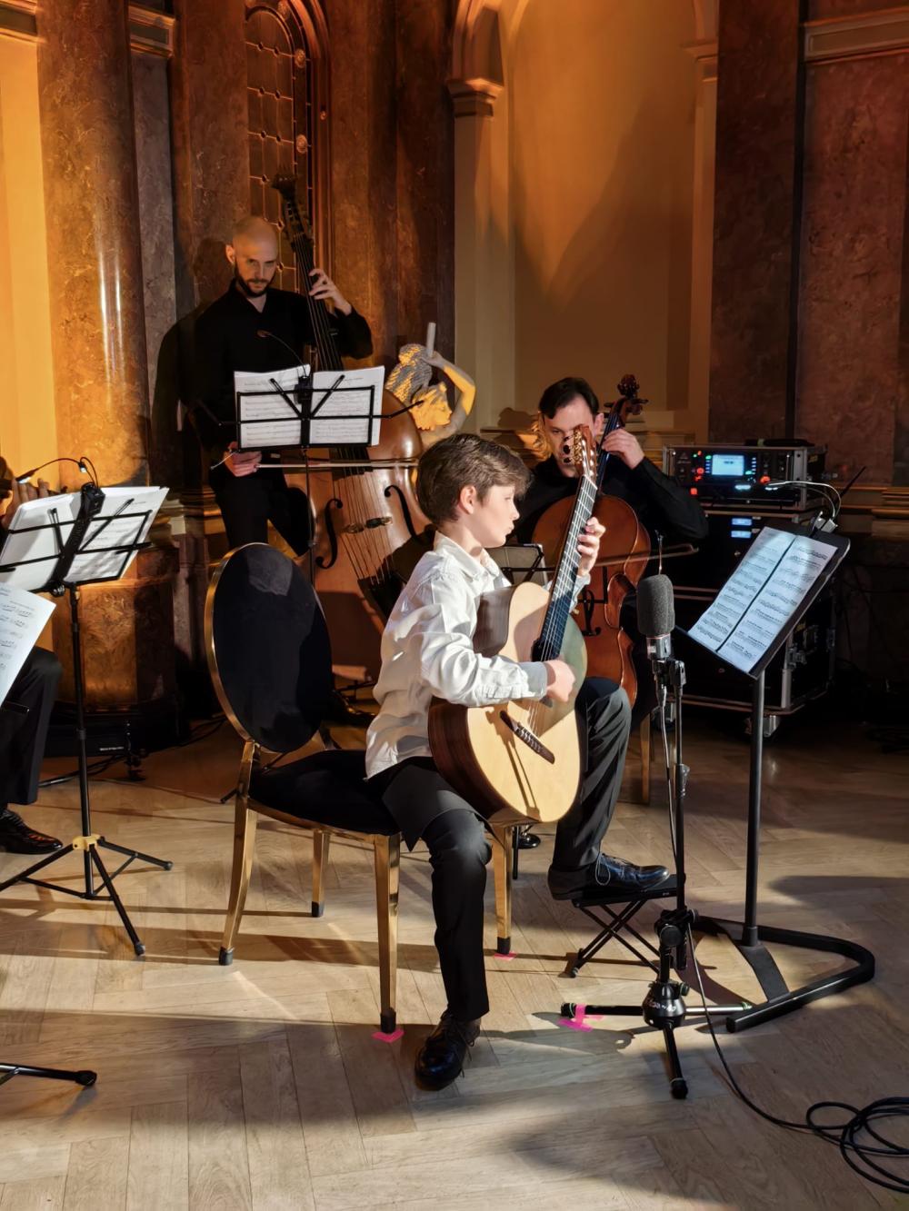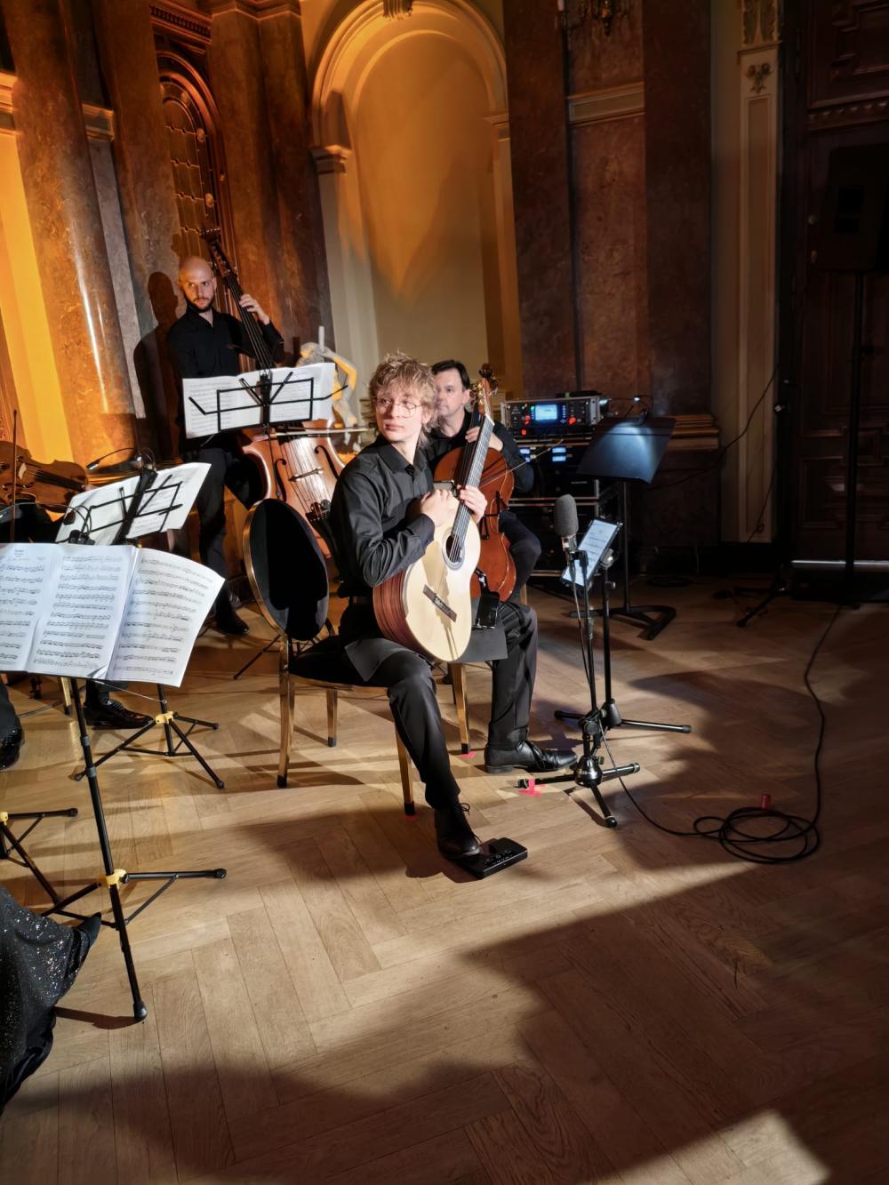 Wspólnie z Krzysztofem Meisingerem – jednym z najwybitniejszych polskich gitarzystów – młodzi artyści zabrali nas w muzyczną podróż pełną barw, emocji i inspiracji. Ich pasja i wirtuozeria zachwyciły wszystkich obecnych, udowadniając, że przyszłość polskiej gitary klasycznej jest w doskonałych rękach!