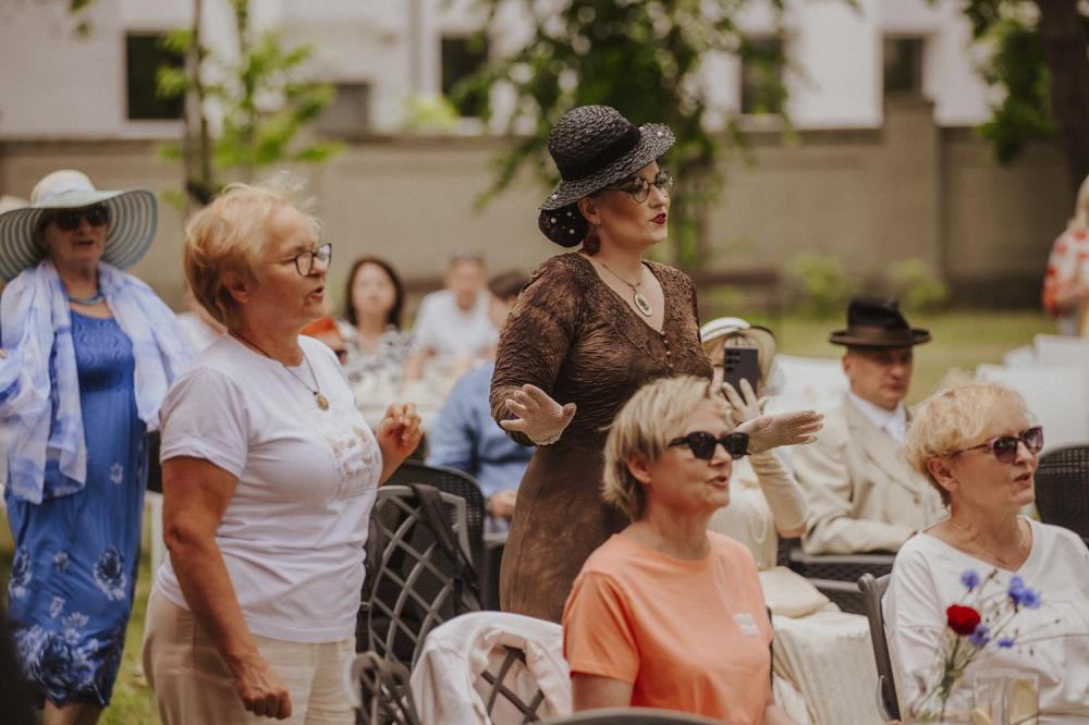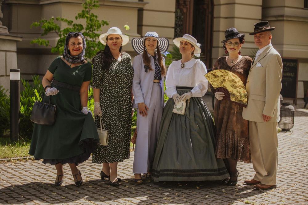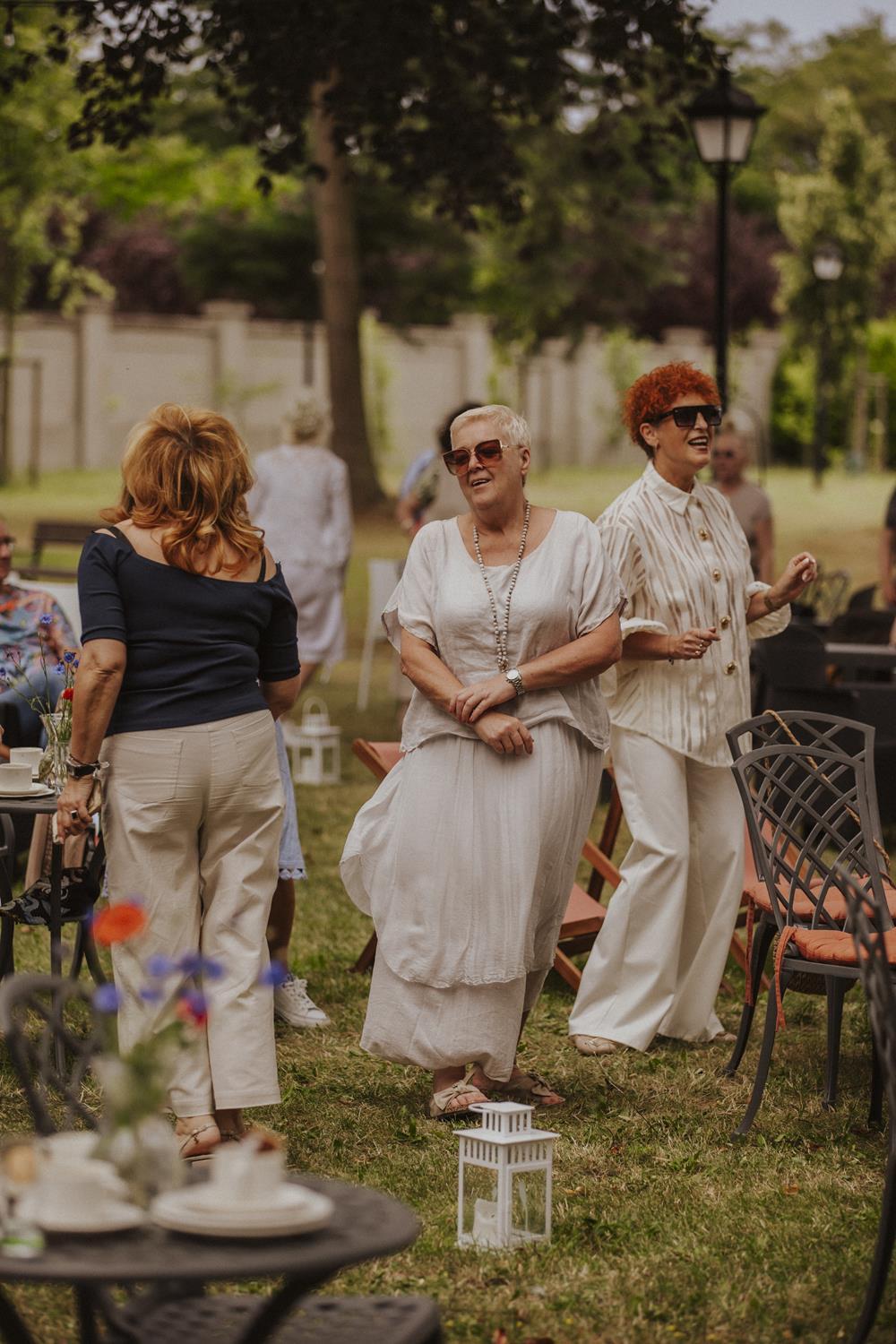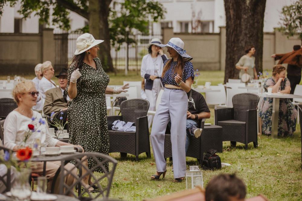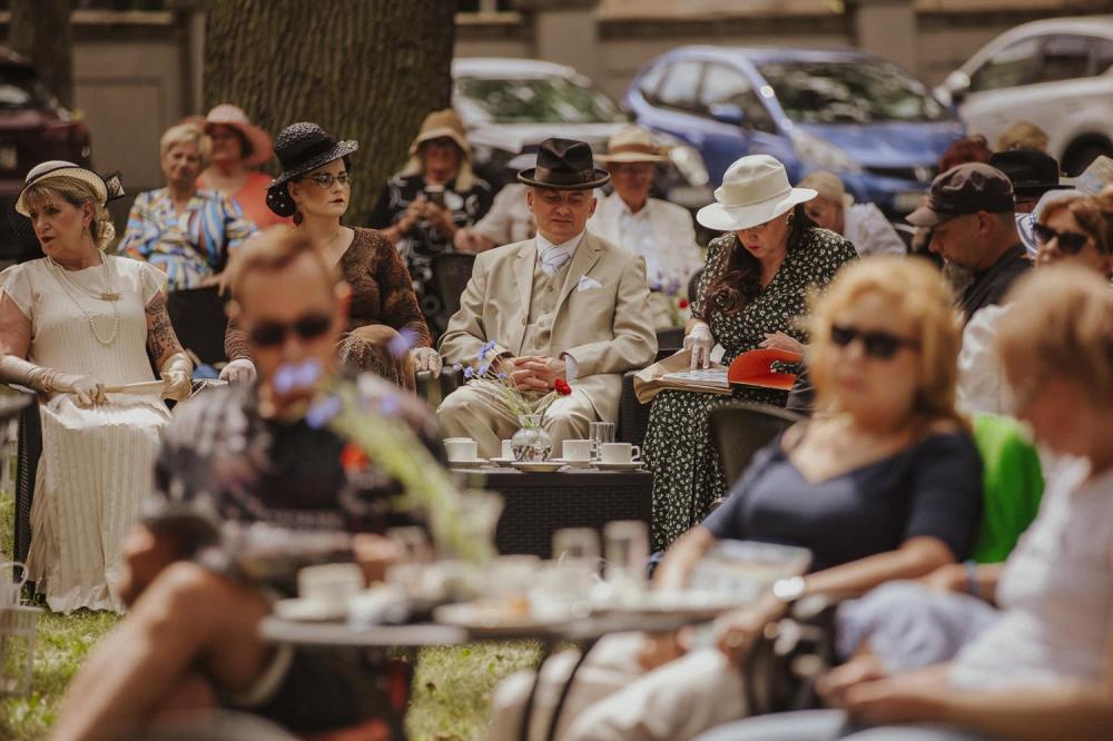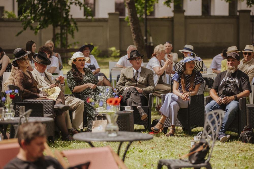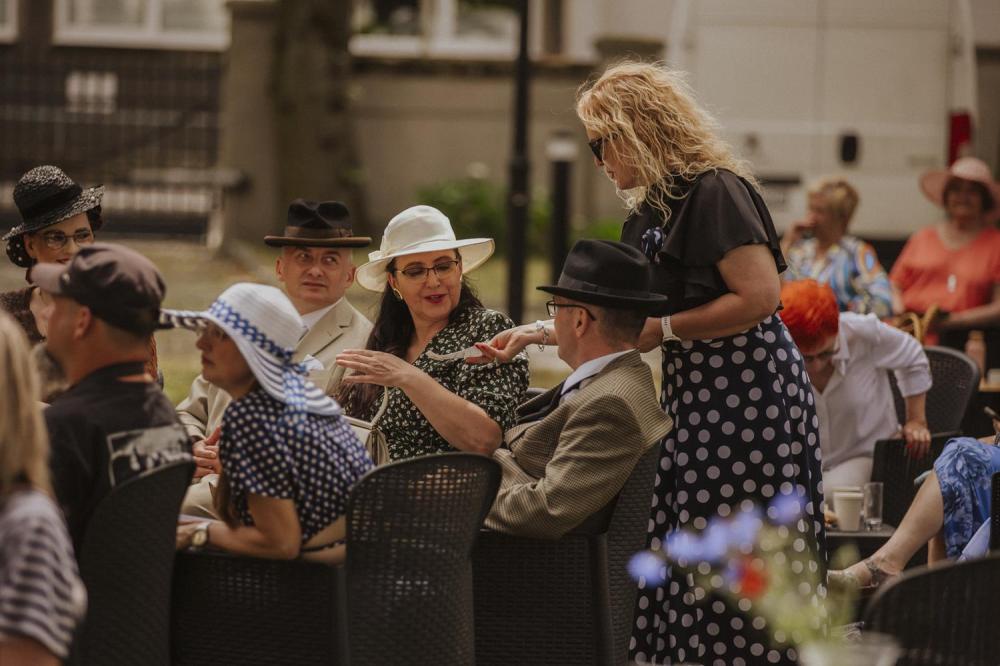 Goście chętnie przybyli w kostiumach i dodatkach inspirowanych 80-letnią historią polskiego Szczecina, sprawiając że ogród Willi Lentza rozkwitł barwami minionych dekad 🌺🌈.