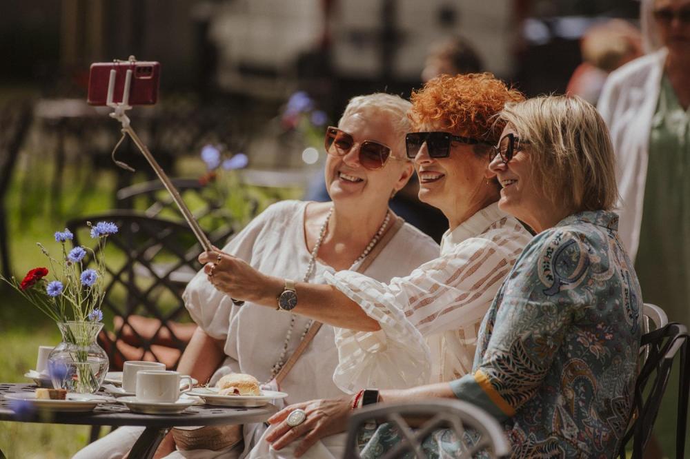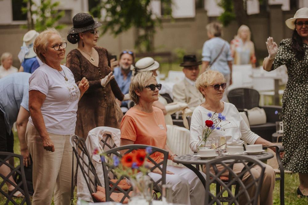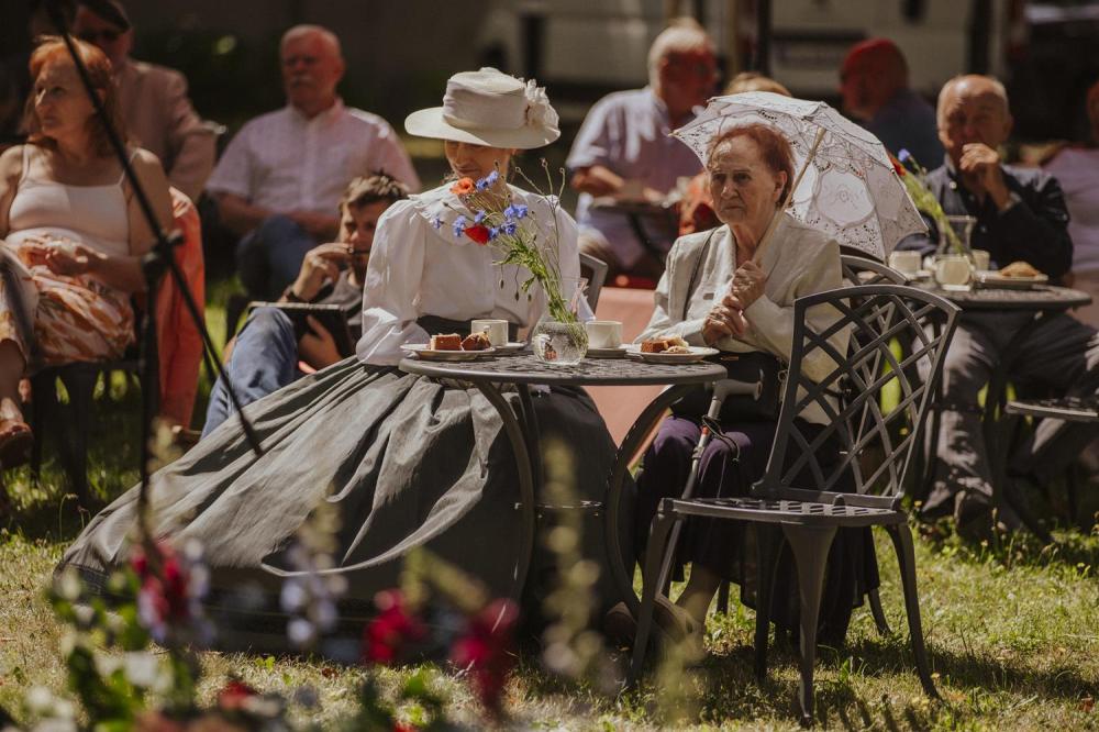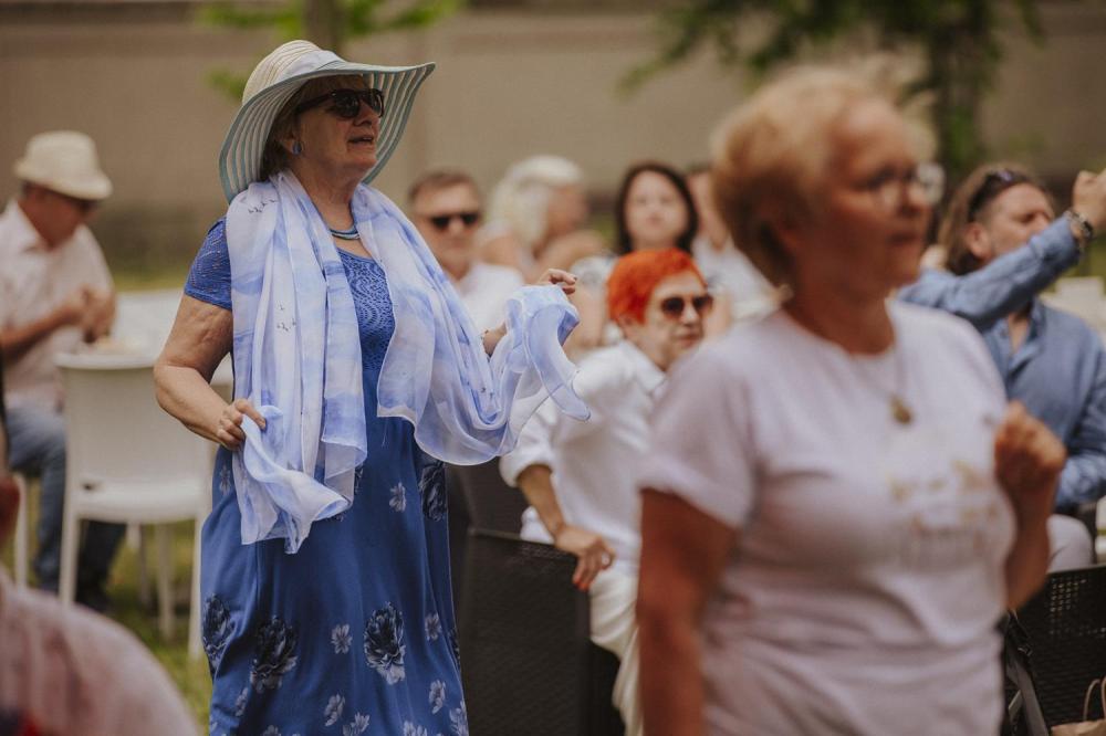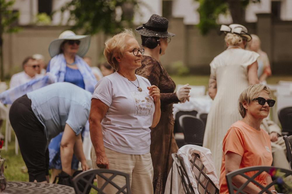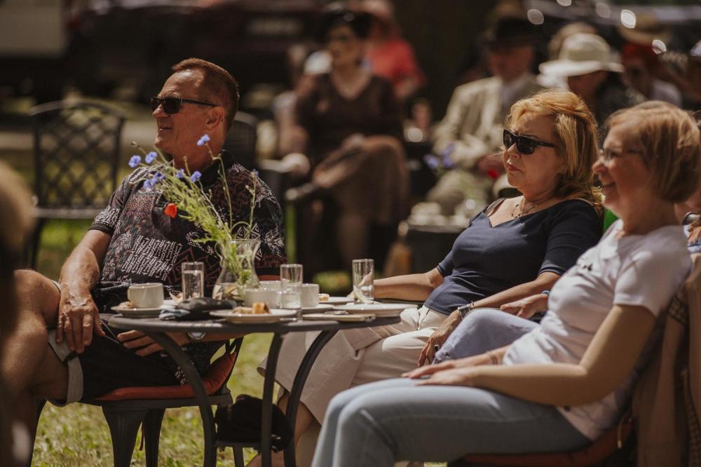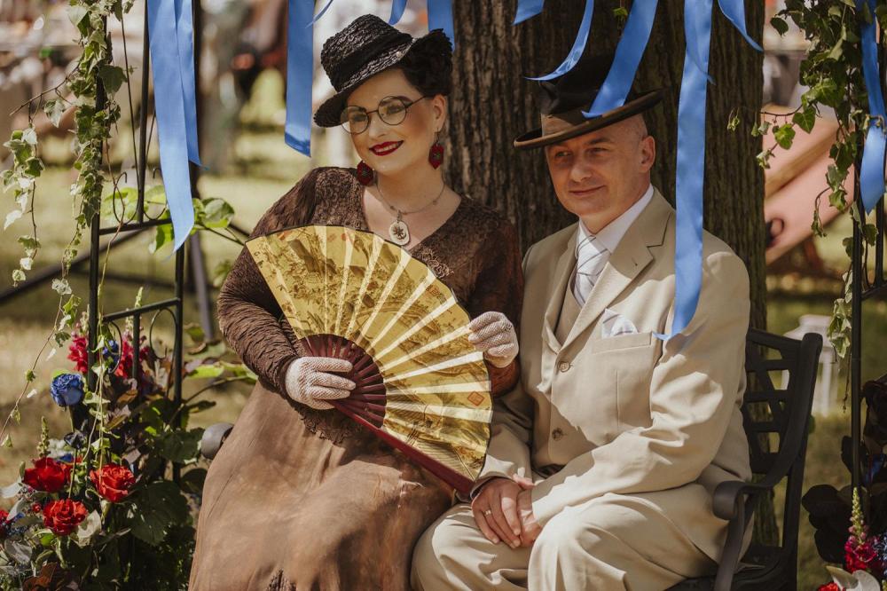 Goście chętnie przybyli w kostiumach i dodatkach inspirowanych 80-letnią historią polskiego Szczecina, sprawiając że ogród Willi Lentza rozkwitł barwami minionych dekad 🌺🌈.